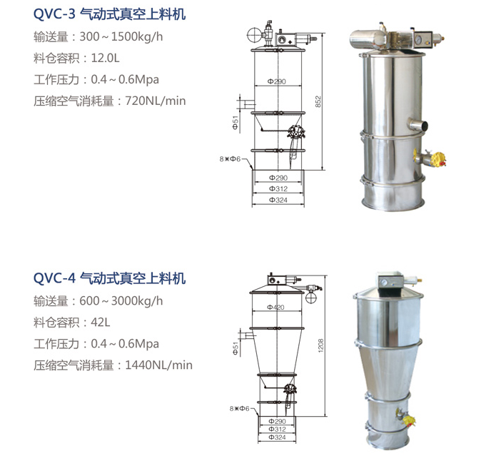 氣動(dòng)式真空上料機(jī)是利用壓縮空氣通過真空發(fā)生器產(chǎn)生高真空實(shí)現(xiàn)對(duì)物料的輸送,不需要機(jī)械式真空泵,具有結(jié)構(gòu)簡(jiǎn)單、體積小、免維修、噪音低、控制方便、消除物料靜電和符合GMP要求等優(yōu)點(diǎn)。真空發(fā)生器產(chǎn)生的高真空,使被輸送的物料杜絕了分層現(xiàn)象,保證了混合物料成份的均一性,是壓片機(jī)、膠囊填充機(jī)、干法制粒機(jī)、包裝機(jī)、粉碎機(jī)、振動(dòng)篩等機(jī)械自動(dòng)上料的設(shè)備。